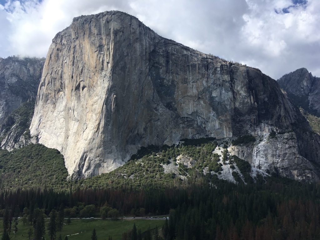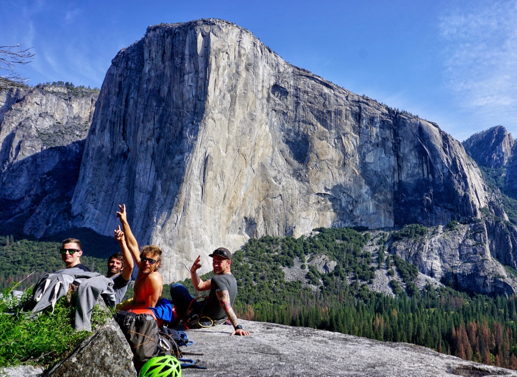 „Wann landen die Jungs?“, fragte mich Uli im Schatten der saftigen Packwiese und legte seinen Fallschirm zusammen. Ich weiß sofort worauf er hinaus will. Ein Sprung geht sich tatsächlich noch aus, dann aber ab nach San Fran Intl Airport, ist zum Glück nur 1,5h entfernt, mit dem verkehr aber 2,5 h. Als wir ankommen mussten wir tatsächlich noch auf die Jungs warten, bis sie durch all die Kontrollen geschleust wurden. Beide machen einen sagen wir, „gejetlagden“ Eindruck, sind aber gut drauf und überdreht. Wir fahren Richtung Turlock, nach nur 10 Minuten ist auch schon Stille auf der Rückbank, Tobis Kopf klebt an der Scheibe und Hias schläft auch. In Turlock essen wir mexikanisch und im Motel fallen wir alle erledigt ins Bett. Am nächsten Tag steht Shopping am Programm, wir brauchen noch Essen fürs Valley. Kurz darauf liegen wir auch schon in den Meadows und die Jungs können erstmals den El Capitan in seiner vollen Pracht bestaunen. Es ist ihnen unschwer an zu kennen, dass ihnen das Herz ein wenig in die Hose gerutscht ist.