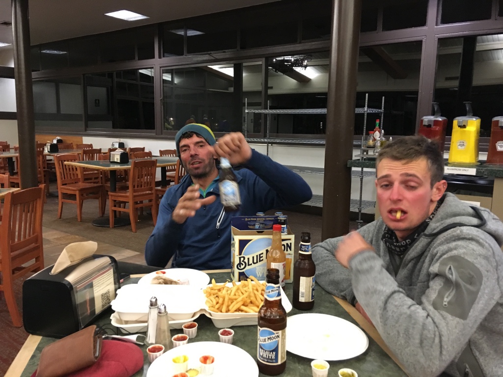 Unsere Fallschirmspringer Freunde Aaron und Christl zauberten uns die wohl besten Ripperl die wir je gegessen hatten und nach ein paar Blue Moon sah die Welt wieder in Ordnung aus. Es war eine echt lustige Party auf unserer Campsite und wir waren froh um das trockene zelt und die warmen Schlafsäcke. Tags drauf war das Wetter immer noch wechselhaft und wir hatten ohnehin nur noch 3 Tage übrig und wenn man ein paar Tage schlechtes Wetter im Valley erlebt hat, hat man es auch irgendwann gesehen. So machten wir uns für die letzten 2 tage auf den Weg nach Davis. Tobi, der in seinem Leben nur einmal geflogen ist und zwar nach San Francisco, machte seinen ersten und sogar seinen zweiten Tandemsprung und wir mussten alle lachen, da er bei seinem zweiten Flug mit einem Flugzeug, nicht mal mit der Maschine gelandet ist. Kann auch nicht jeder sagen. Bei einem saftigen Burger und anschließendem Lagerfeuer unter Sternenhimmel ließen wir alle die wahnsinns Zeit die wir erleben durften Revue passieren. Wir waren glaub ich ziemlich mit krassen Eindrücken überladen.